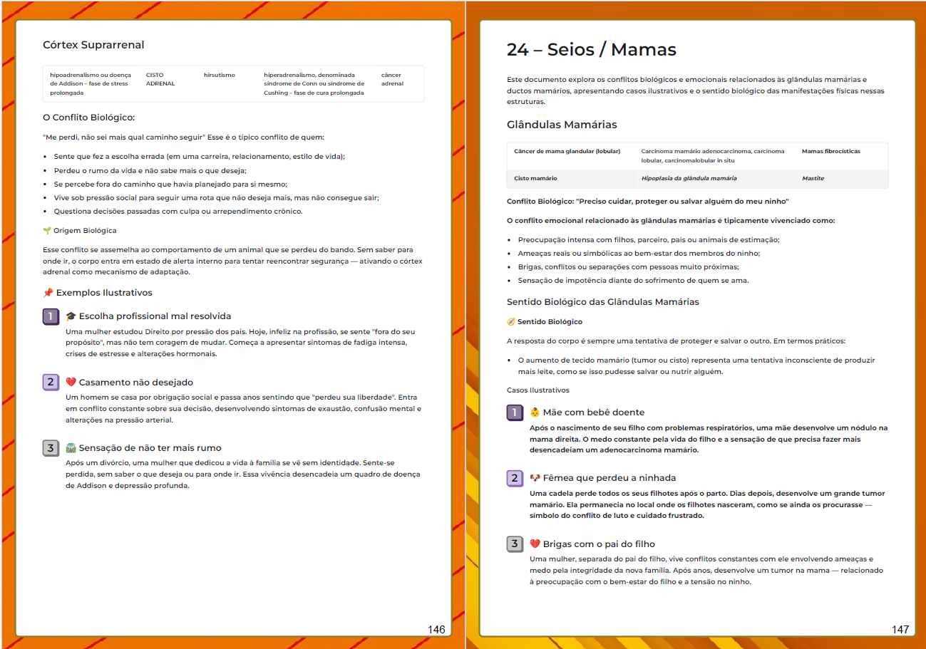 Descobre que cada sintoma tem uma lógica específica baseada no conflito emocional exato que a pessoa viveu.