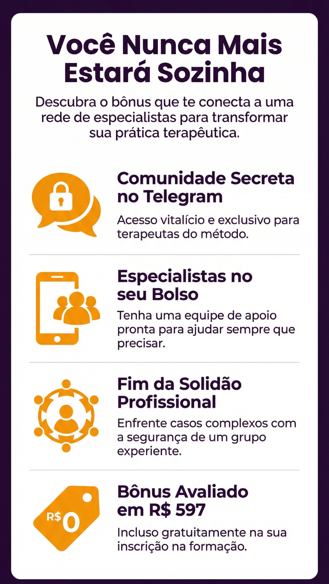 Resultado: você se torna um terapeuta capaz de guiar processos profundos sem se sobrecarregar — entregando resultados que falam por si.