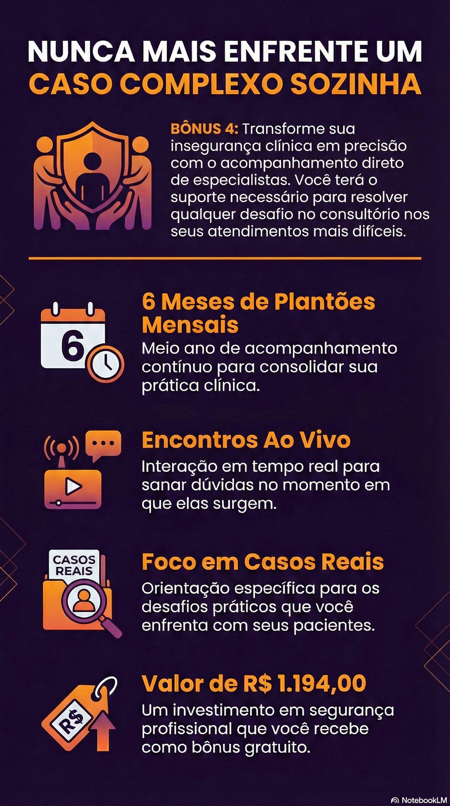 Bônus 4: 6 Meses de Plantões de dúvidas Mensais ao vivo para tirar dúvidas de casos reais. (Valor: R$ 1.194)